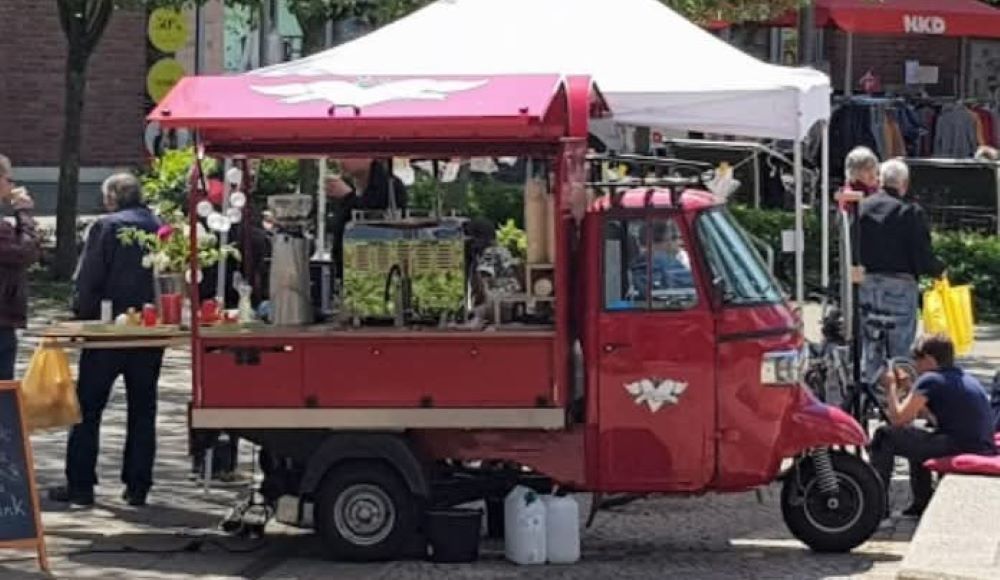 Neben aromatischem Kaffee gibt es eine Auswahl hausgemachter Kuchen. So wird die rollende Espresso-Bar zum Treffpunkt für Gespräche, Begegnungen und eine kleine Stärkung beim Marktbummel.Â