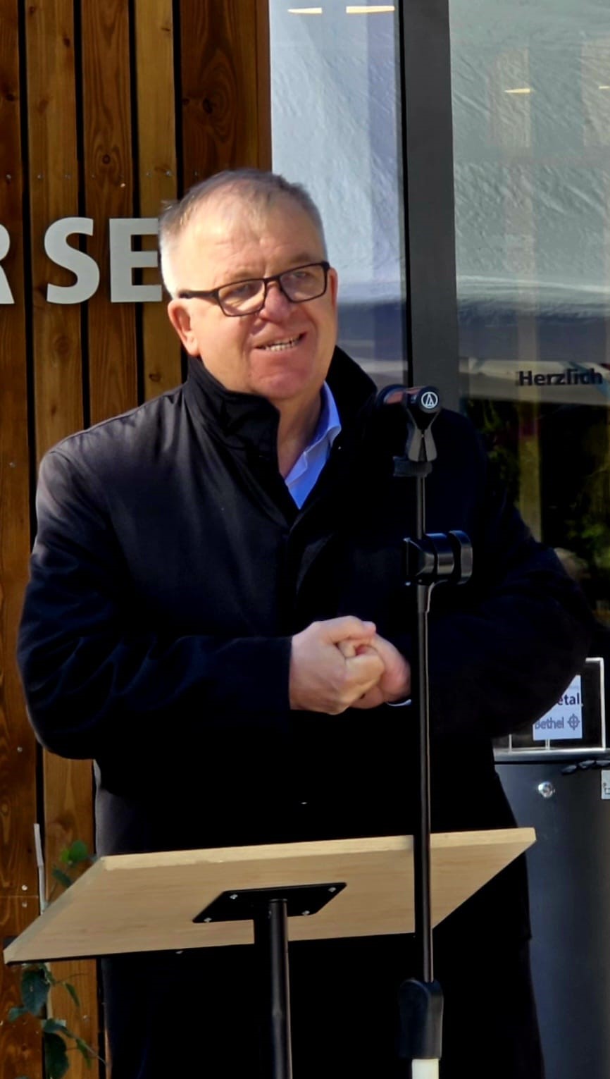 Pastor Pohl von der Stiftung Bethel erinnert: „Gott hat uns viel Gutes getan.“ Auch wenn das Projekt politisch nicht unumstritten war, so dankte er aber für die Unterstützung auch durch die zahlreichen Spender:innen. Im Verbund der Bethel Stiftung sind nun schon neun Hospize.