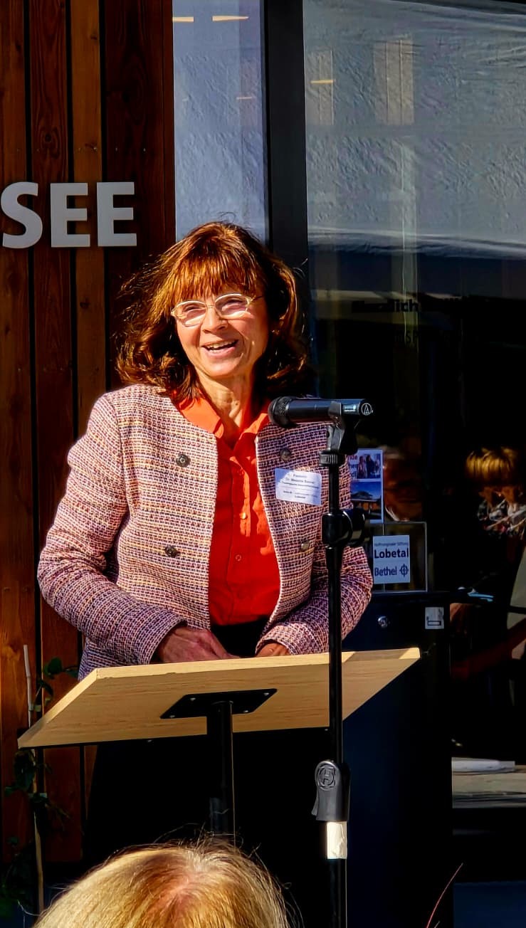 Pastorin Wagner-Pinggéra hat das Projekt von Anfang an begleitet und erinnert an die erste Begehung des Geländes, die Bürgerversammlung, den 1. Spatenstich. Unter den neun Bethel-Hospizen gibt es auch ein Kinderhospiz. Die Hospiz-Idee entwickelte sich in den 60ziger Jahren zunächst in England und kam in den 80ziger nach Deutschland. Damals nahm man gerade die stigmatisierten Aidspatienten auf. Das erste Hospizes der Bethel-Stiftung wurde in 1998 eröffnet. In den Hospizen sieht sie eine Alternative zum assistierten Suizid (erste Sterbehilfevereine gründeten sich in den 90zigern).