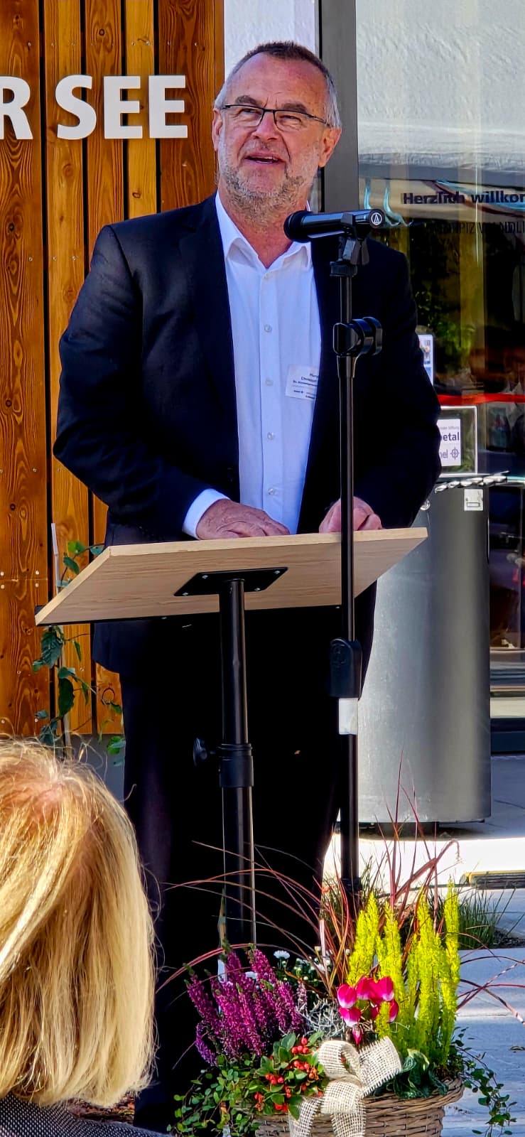 Landrat Daniel Kurth weist auf Lobetals 25-jährige Erfahrung hin. In den 16 hellen Einzelzimmern des neuen Hospizes im naturnahen Umfeld wird gelebte Menschlichkeit sein, der Würde und Individualität der Gäste sind gewährleistet. Er ist froh über die Zusammenarbeit von Landkreis und Lobetal und hat mit der Hoffnungstaler Stiftung Lobetal und der Gemeinde Wandlitz starke Partner an der Seite. Er hochachtet die Spenden für das Hospiz in Höhe von 3,8Mio € und dankt allen Unterstützer:innen: „Gratulation, ein Gewinn für unsere Region!“