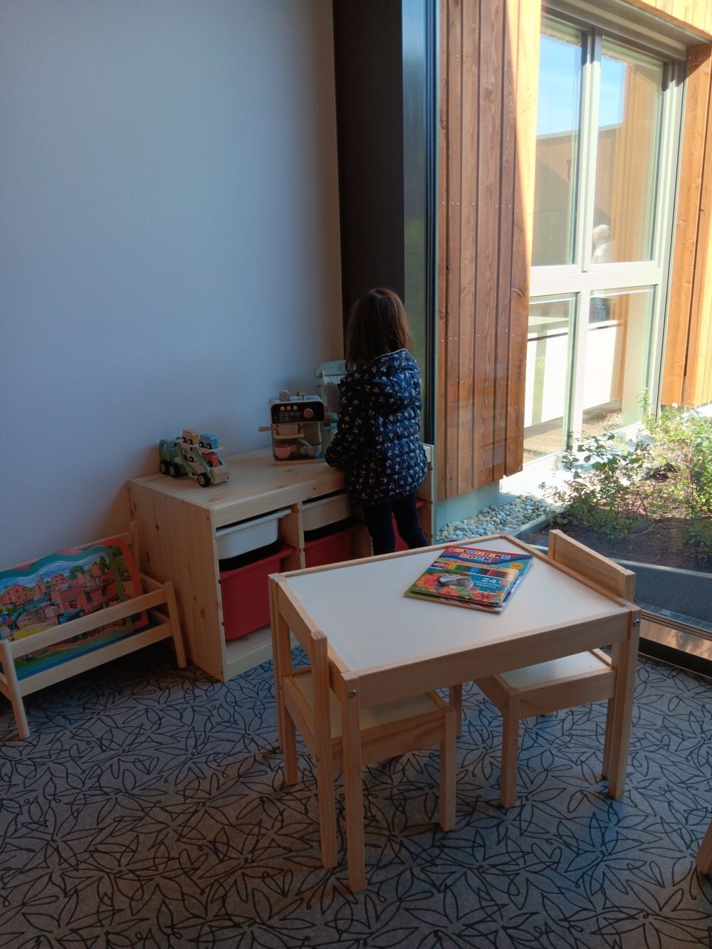 Der Ort wirkt durch seine gegliederte Holzfassade sehr zierlich, bietet aber mit den Abmessungen von 40 x 40m viel Raum, der in Zusammenarbeit mit dem Träger bis in Detail großzügig geplant wurde. Obwohl alle Zimmer hell und freundlich sind, wurden sie mit Oberlichtern ausgestattet, damit die Gäste aus dem Bett heraus in die Baumwipfel und die ziehenden Wolken blicken können.