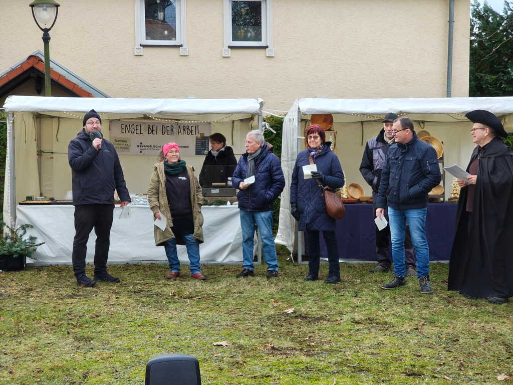 Lucas Ludewig, der Pfarrer der evangelischen Kirchgemeinde eröffnet gegen 14 Uhr mit ein paar Gestalten aus der örtlichen Politik kurz den Markt und dann trudeln auch schon die ersten Gäste ein und gucken, stehen rum, quatschen mit den lange nicht mehr gesehenen Nachbarn und essen und trinken, was feilgeboten wird.