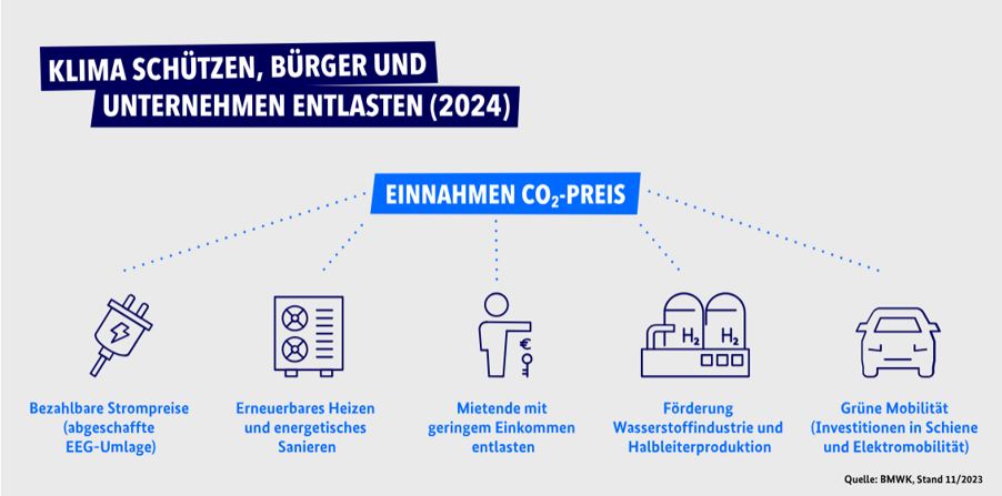 Auch unabhängig von dieser Situation werden die Preise für Öl und Gas steigen. Wenn diese Stoffe beim Heizen oder im Automotor verbrannt werden, entsteht Kohlendioxid CO₂. Dieses führt in der Erdatmosphäre zum Treibhauseffekt, also zur Erderwärmung und Klimawandel. Deshalb haben sowohl Bundesregierung als auch die Europäische Union EU einen Mechanismus eingeführt, der zu steigenden Preisen für den CO₂- Ausstoß führt und so fossile Kraftstoffe jedes Jahr teurer macht. Die Einnahmen aus der CO₂- Bepreisung fließen vollständig in den Klima- und Transformationsfonds (KTF). Dieser finanziert Entlastungsmaßnahmen für Haushalte und Unternehmen, die den Umstieg auf klimafreundliche Technologien wie z.B. Wärmepumpen und Elektromobilität unterstützen sollen.